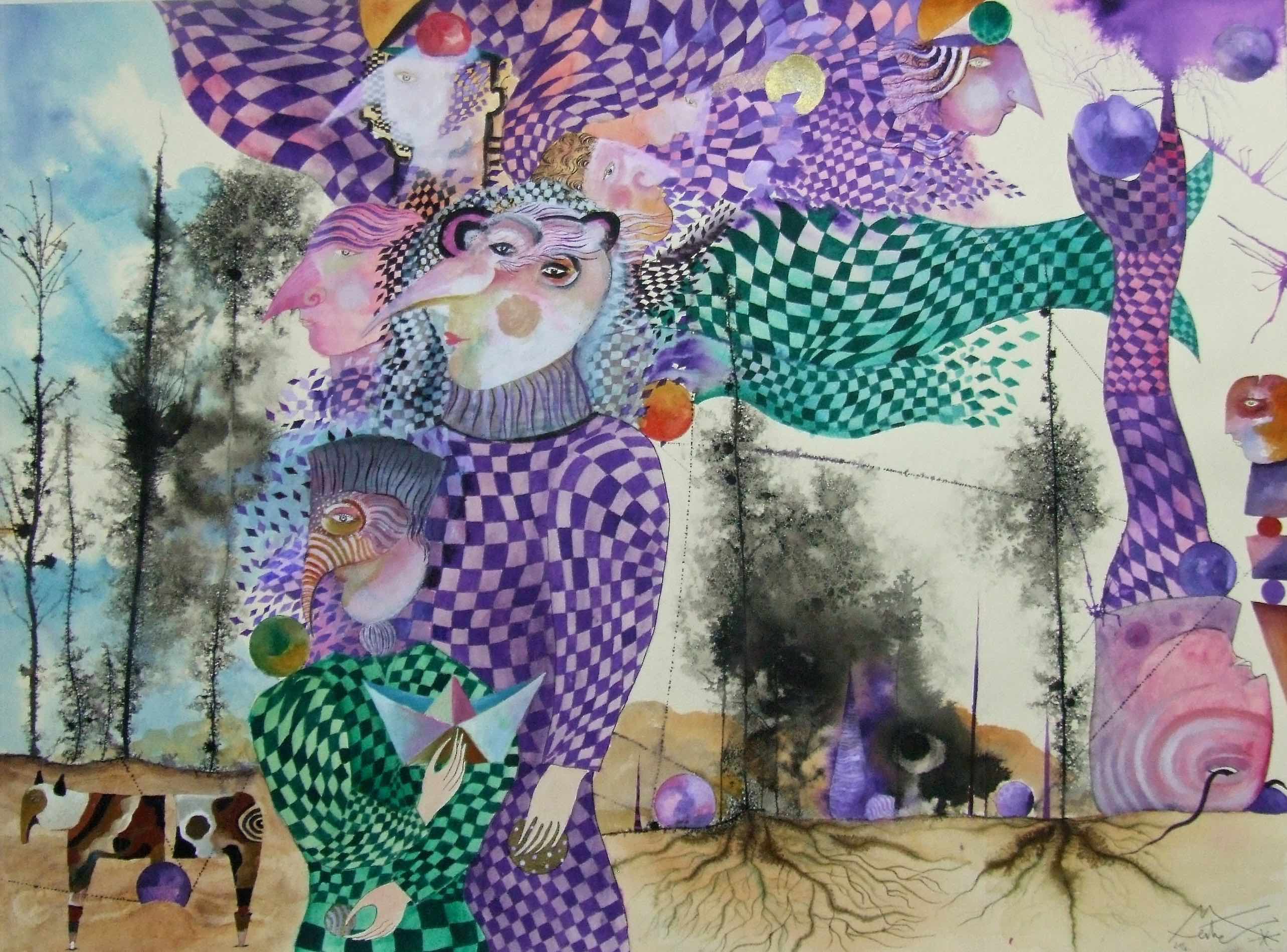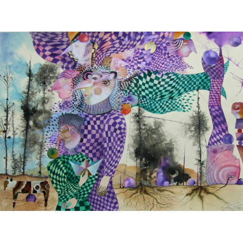 "El territorio de las ensoñaciones" acuarela y pintura sobre papel 76 x 56 cm