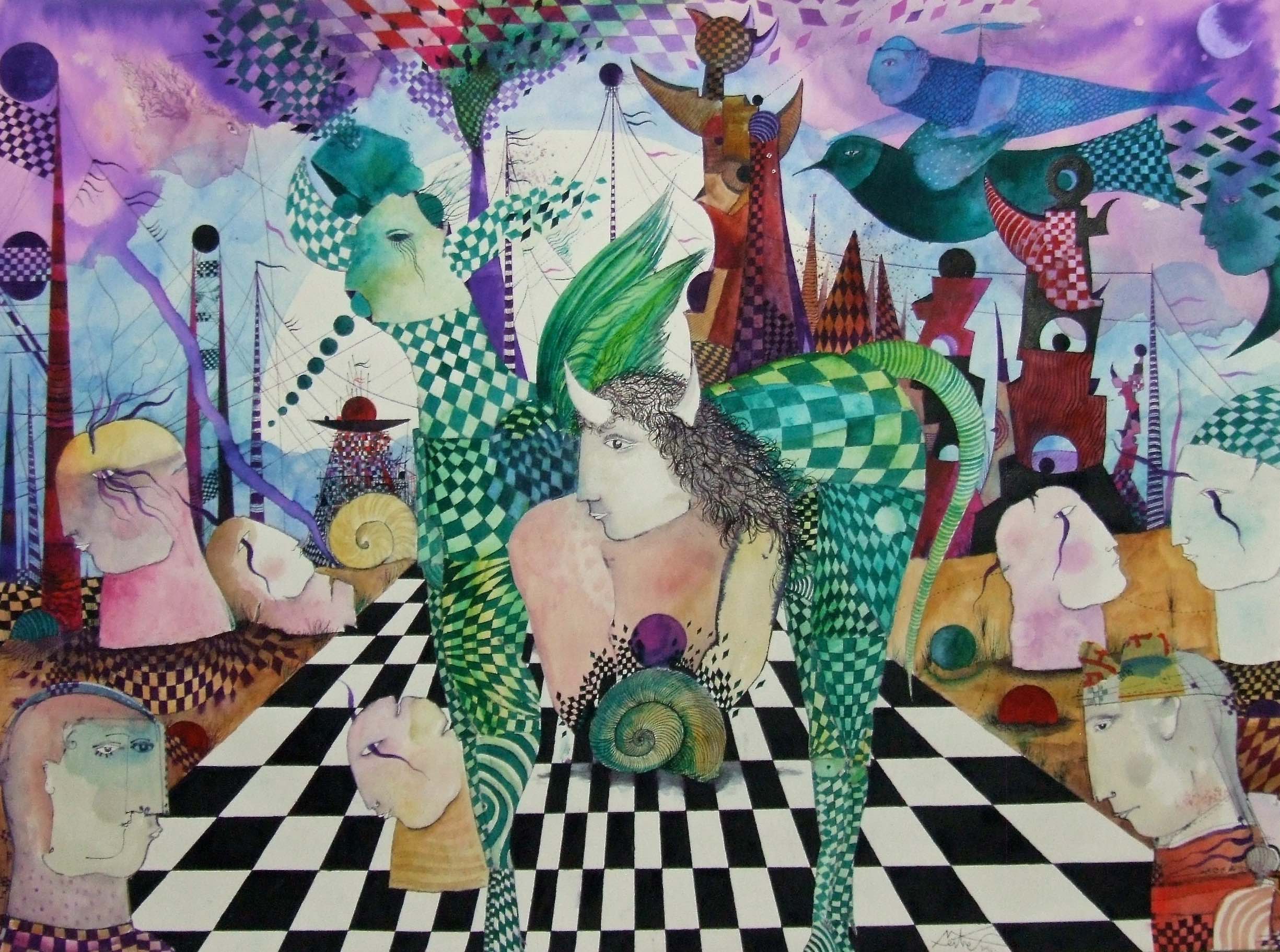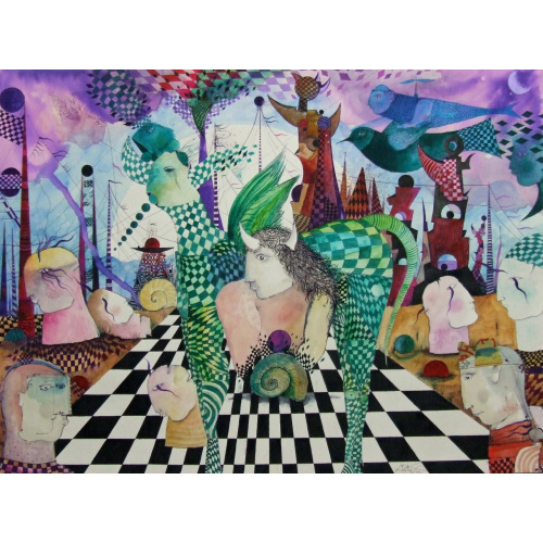 "El territorio de las ensoñaciones" acuarela y pintura sobre papel 76 x 56 cm