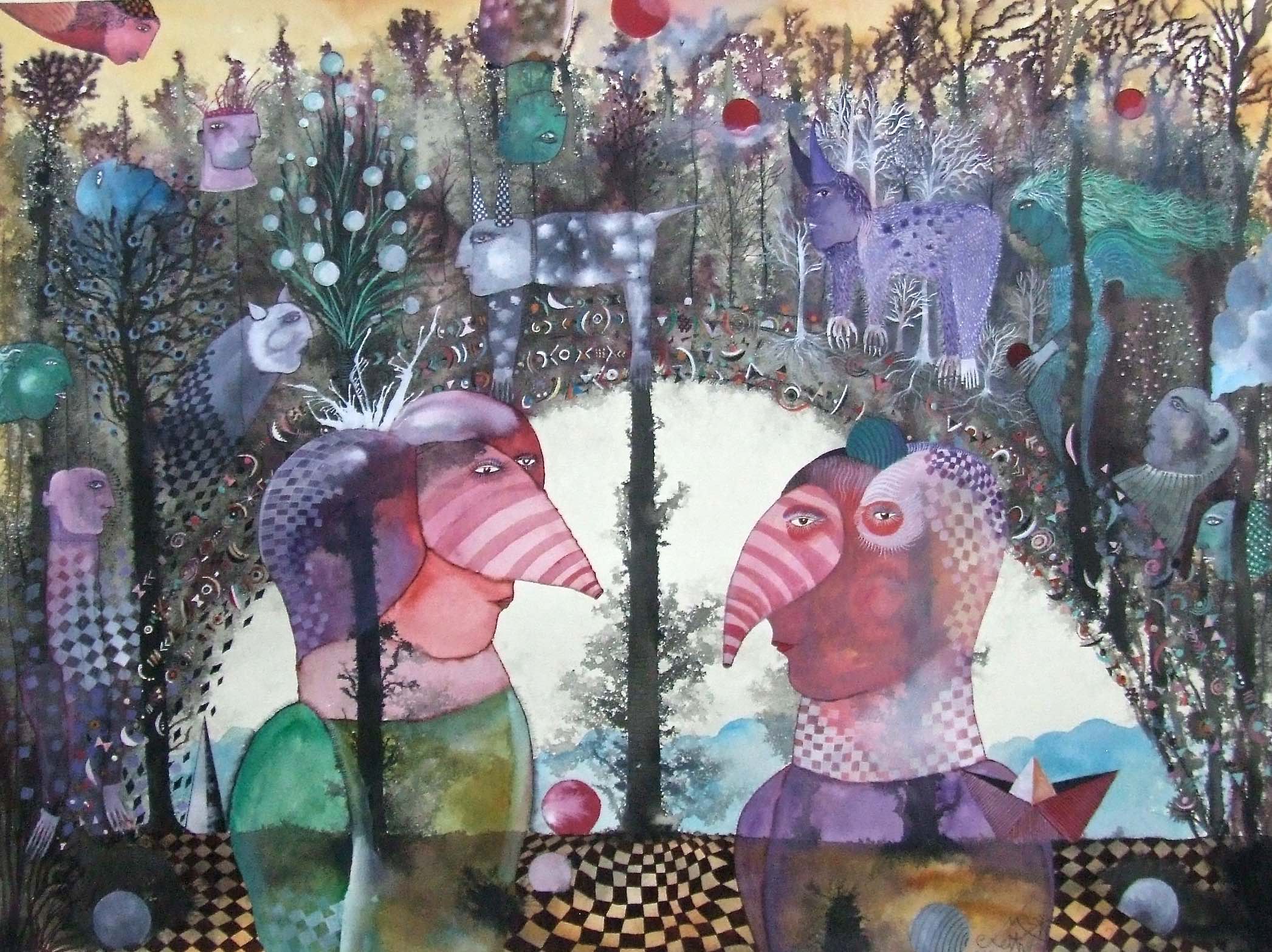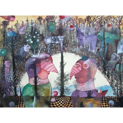 "El territorio de las ensoñaciones " acuarela y pintura sobre papel 76 x 56 cm