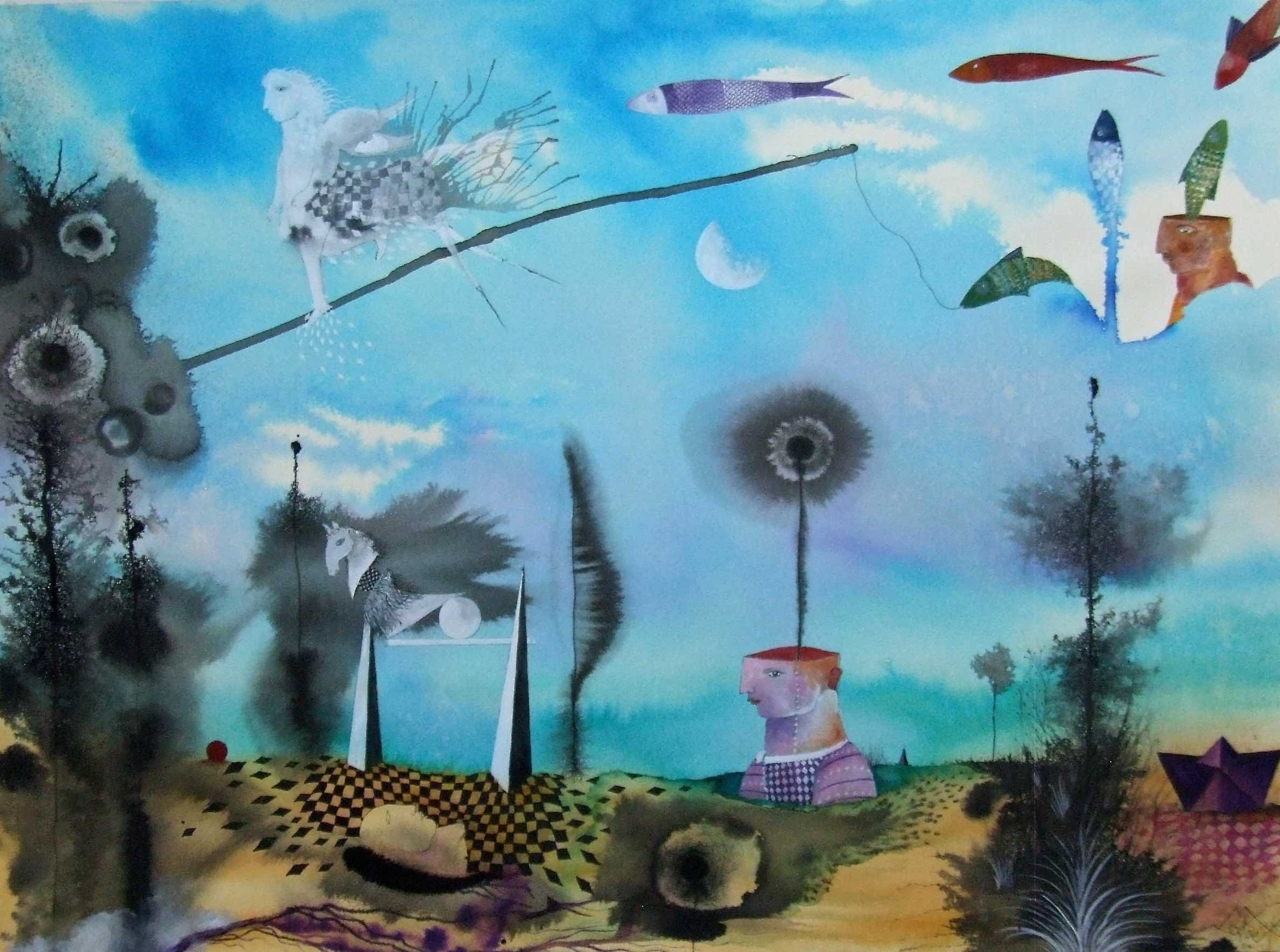 "El territorio de las ensoñaciones" acuarela y pintura sobre papel 76 x 56 cm